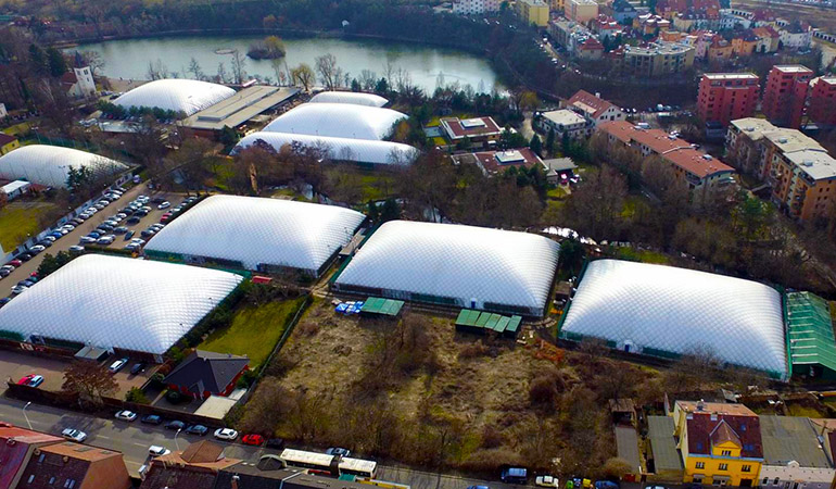 Naším hlavním oborem je výroba velkoprostorových hal s ocelovou, dřevěnou nebo přetlakovou konstrukcí s textilním opláštěním.